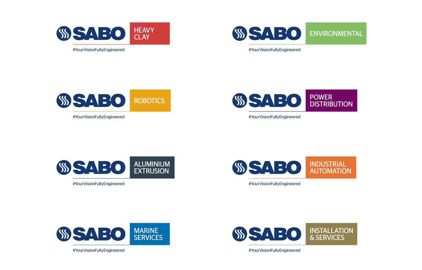 Για κάθε sector της SABO επιλέχθηκε ένα διαφορετικό χρώμα, που συνδέεται με το αντικείμενο και τη δραστηριότητά του. Ο σχεδιασμός είναι σύγχρονος, καθαρός και πρακτικός, επιτρέποντας εύκολη εφαρμογή και άμεση αναγνώριση τόσο σε digital όσο και σε print υλικά.
